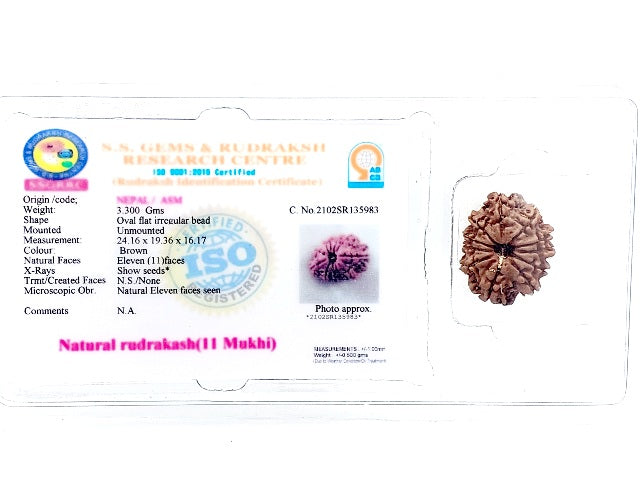 11 मुखी रुद्राक्ष को साक्षात शिव के रुद्र रूप का प्रतीक माना जाता है और यह रुद्राक्ष भगवान इन्द्र का भी प्रतिनिधित्व करता है। इस रुद्राक्ष को विशेष रूप से हनुमान जी के आशीर्वाद से जोड़ा जाता है। यह रुद्राक्ष उन सभी के लिए अति लाभकारी है, जो घर में भूत-प्रेत की बाधा से परेशान हैं या किसी गंभीर बीमारी से जूझ रहे हैं।
